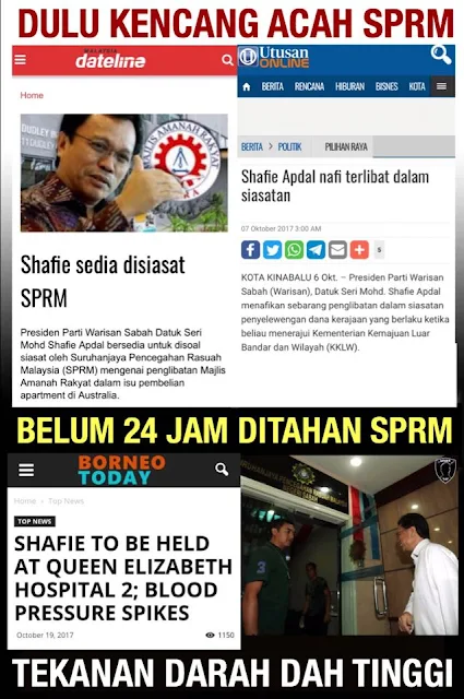 [Mukadimah: Sehingga artikel ini ditulis kita tetap mendahului 10 langkah ke depan dari Shafie Apdal dan puak-puaknya. Yang pasti dia disiasat SPRM, direman dan bakal didakwa. Jika dia hendak lakukan perkara sama membuat tuduhan kepada orang lain silakan. Rasa nak muntah tengok video ucapan Shafie berlagak suci macam tak makan rasuah komisen projek KKLW]